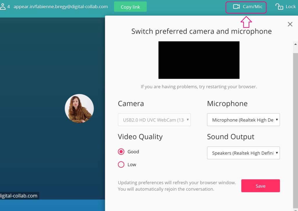 1. Commencez par vérifier les paramètres audio et vidéo sur Appear.in